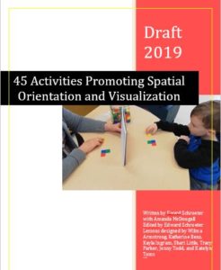 Avec le soutien du Dr Sandy Youmans du MKN et du Dr Douglas H. Clements de l’Université de Denver, l’équipe de 8 éducateurs, 4 RECE (registered early childhood educator) et 4 OCT (Ontario College of Teachers), compile actuellement ses 45 leçons d’une page avec des clips vidéo illustratifs et des ressources téléchargeables sous la forme d’un manuel numérique. La ressource s’intitule actuellement « 45 Activities Promoting Spatial Orientation and Visualization. » (45 activités favorisant l’orientation spatiale et la visualisation). Les activités sont alignées sur les premières trajectoires d’apprentissage des mathématiques du Dr Douglas H. Clements et de la Dre Julie Sarama.